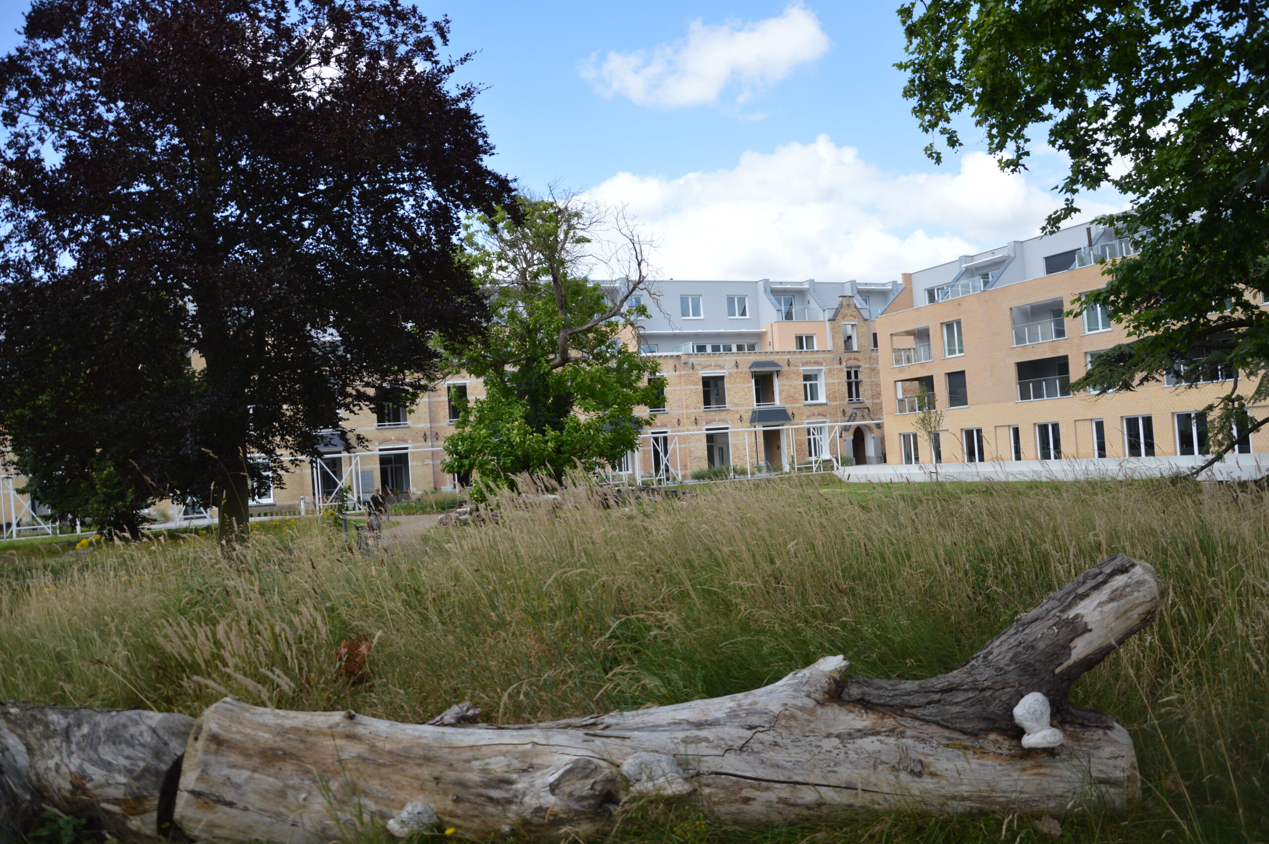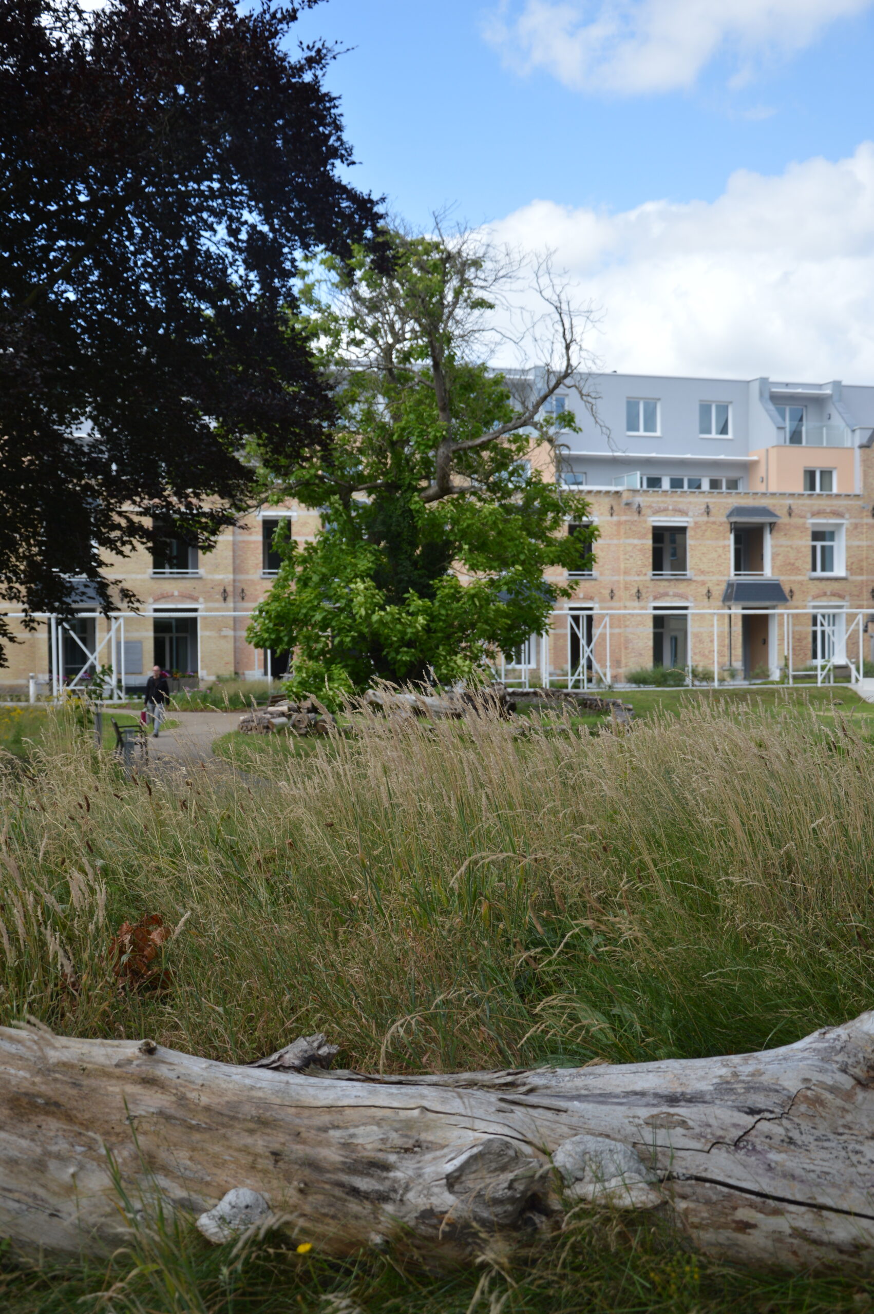 De oorspronkelijke site en gebouwen vormden het voormalige Sint Helena ziekenhuis, omgeven door een Engels landschapspark dat in de jaren ’90 een transformatie onderging, waarbij helaas de nadruk op auto’s kwam te liggen.
