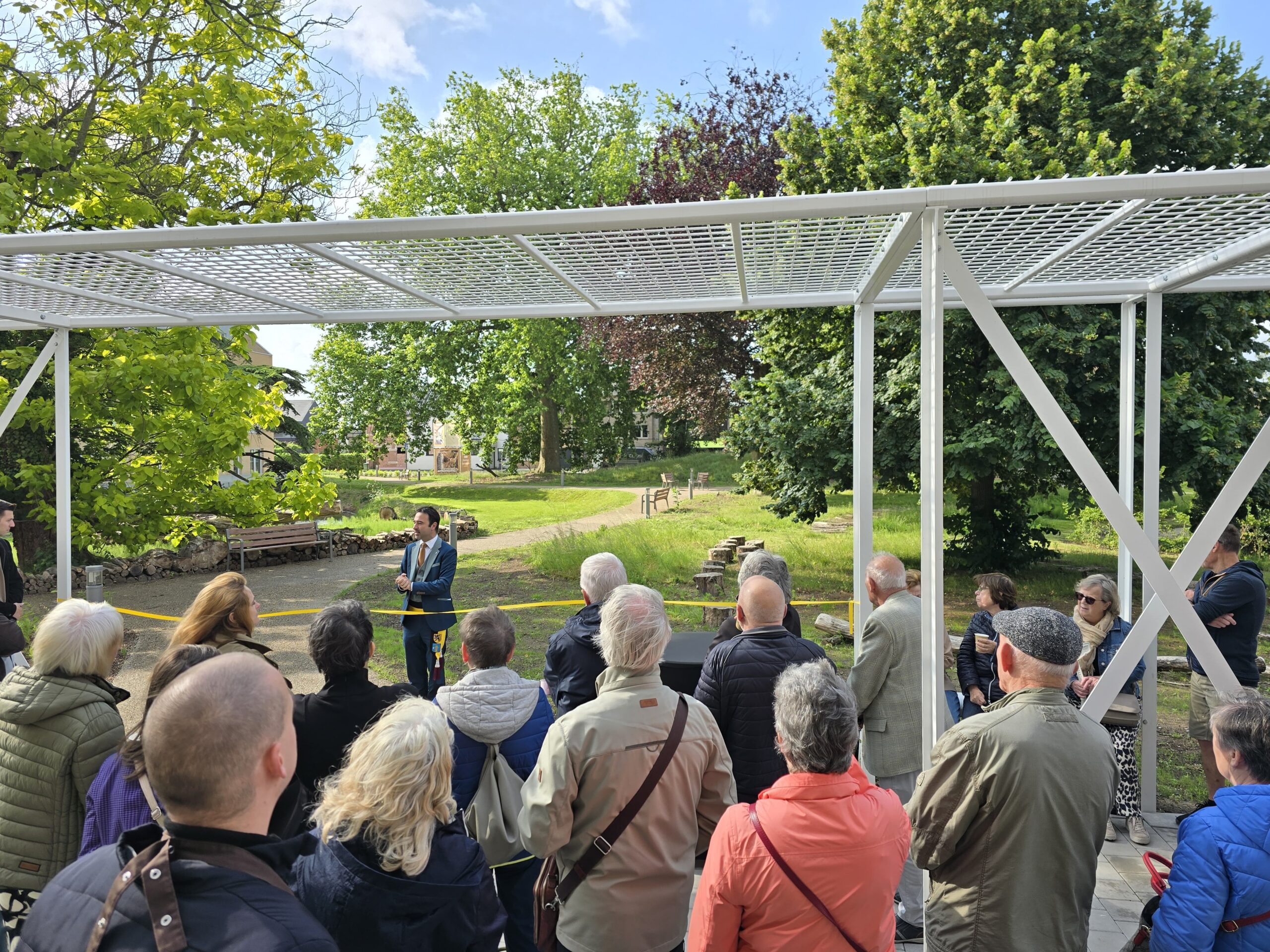 In het hart van het park creëren we een wandelpromenade met een luifel voor een zintuiglijke ervaring van geuren en kleuren.